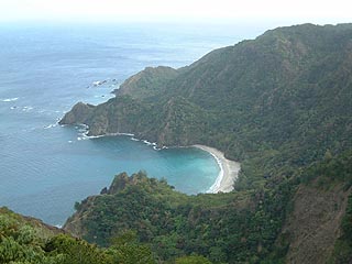中央山からは、ダウンヒルで一気に下り、小港海岸へ。時間と体力があれば、昨日見た、ジョンビーチ、ジニービーチまで行けたが、時間と体力的にきつかったのでやめ、代わりに小港海岸に自転車を置き、コペペ海岸への往復ハイクに出た。しかし、これが結構、こたえた。近いように見えていたが、断崖を越えるコース。どうにか、コペペ海岸に着いたが、一休みが必要だった。休んでいる時に、ひとりの女性がラジカセの前で、音楽をかけながら踊っていた。しばらく、見ていたが、どうやら踊りはフラダンスで、夕陽がいい感じだったので、写真を撮ってもいいかのお願いついでに、話しかけた。彼女は元々、関東出身だが、小笠原の職場の関係で住み始めたようで、島のフラを習っていて、「内地より、講習料は安いですよ。」とのこと。陽が傾き始めたので、再び引き返し、小港海岸から宿に戻った。