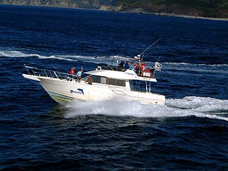 スタッフの皆さんに手を振り、2時過ぎ船はゆっくり出港した。出航後、何艘かのクルーザーが伴走する。5分経っても、クルーザーから手を振り見送る。そして、やっぱり目立つのがパパヤの「ミス・パパヤ」スピードが違います。最後まで「ミス・パパヤ」は、おが丸に伴走し、そしてスタッフの方や乗船するお客さんが飛び込む。パパヤのみなさん、ありがとう。ホントまた来たくなるな~。