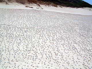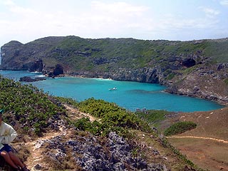 クジラなどを見た後は、南島へ上陸。南島上陸の際は、1回に上陸できる人数が15人と決められている上、公認ガイドさんがいないとだめなのです。正月には、荒波の中、扇池の狭いトンネルをくぐり泳いで必死の思いで南島に上陸したのとは打って変わって、今回はマンボウ号に乗り換え、穏やかなサメ池から上陸しました。サメ池は穏やかでしたが、扇池は、まるで荒れ狂う冬の日本海のようでした。また、南島では、季節的に北へ帰り遅れて感じの白鳥1羽を見かけています。