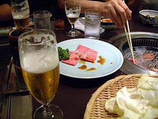 焼肉のコースを頼みましたが、どれも美味しく、特に米沢牛の特上ロースとカルビが絶品でした。もちろん野菜(キャベツ、キムチ)も美味しかった!